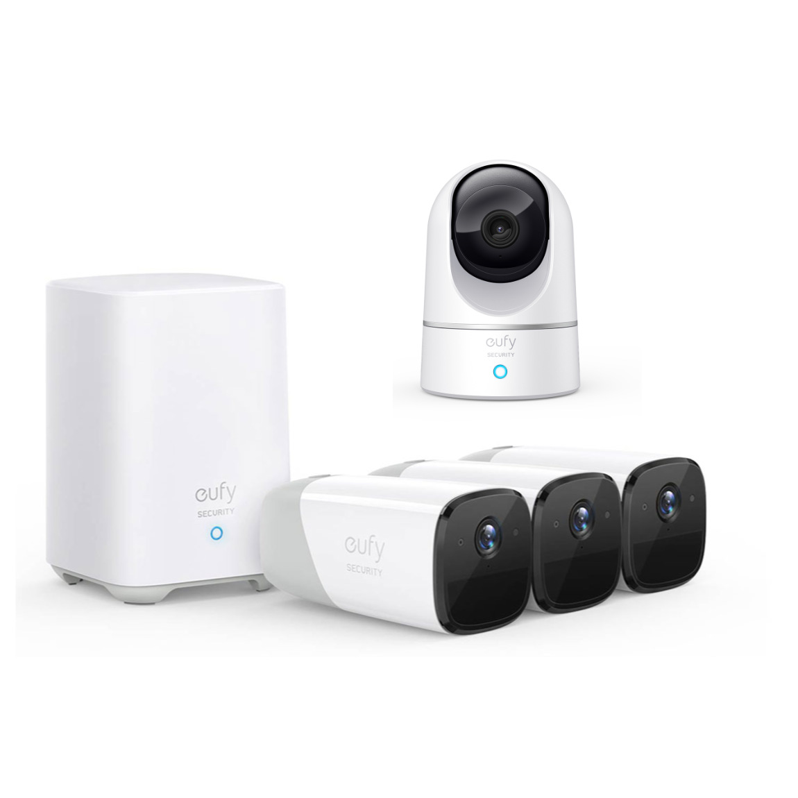 | Umfassende Sicherheit | Drei eufyCam 2 Pro Kameras und eine Solo IndoorCam Pan & Tilt für Rundum-Überwachung. |
