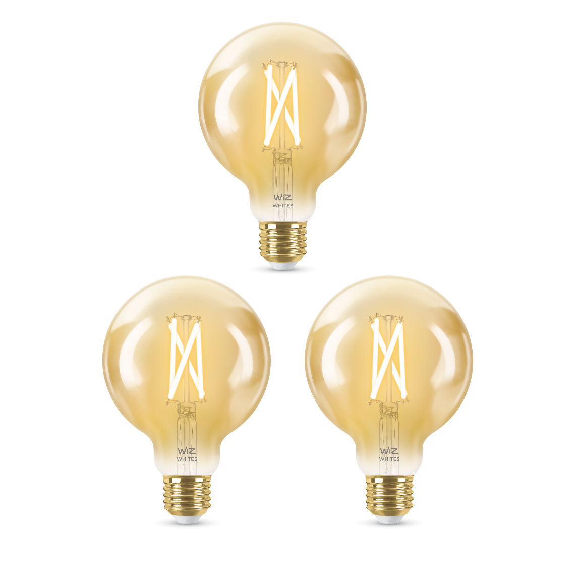 - 3 x WiZ 50W E27 G95 Globeform Filament Amber Lampen